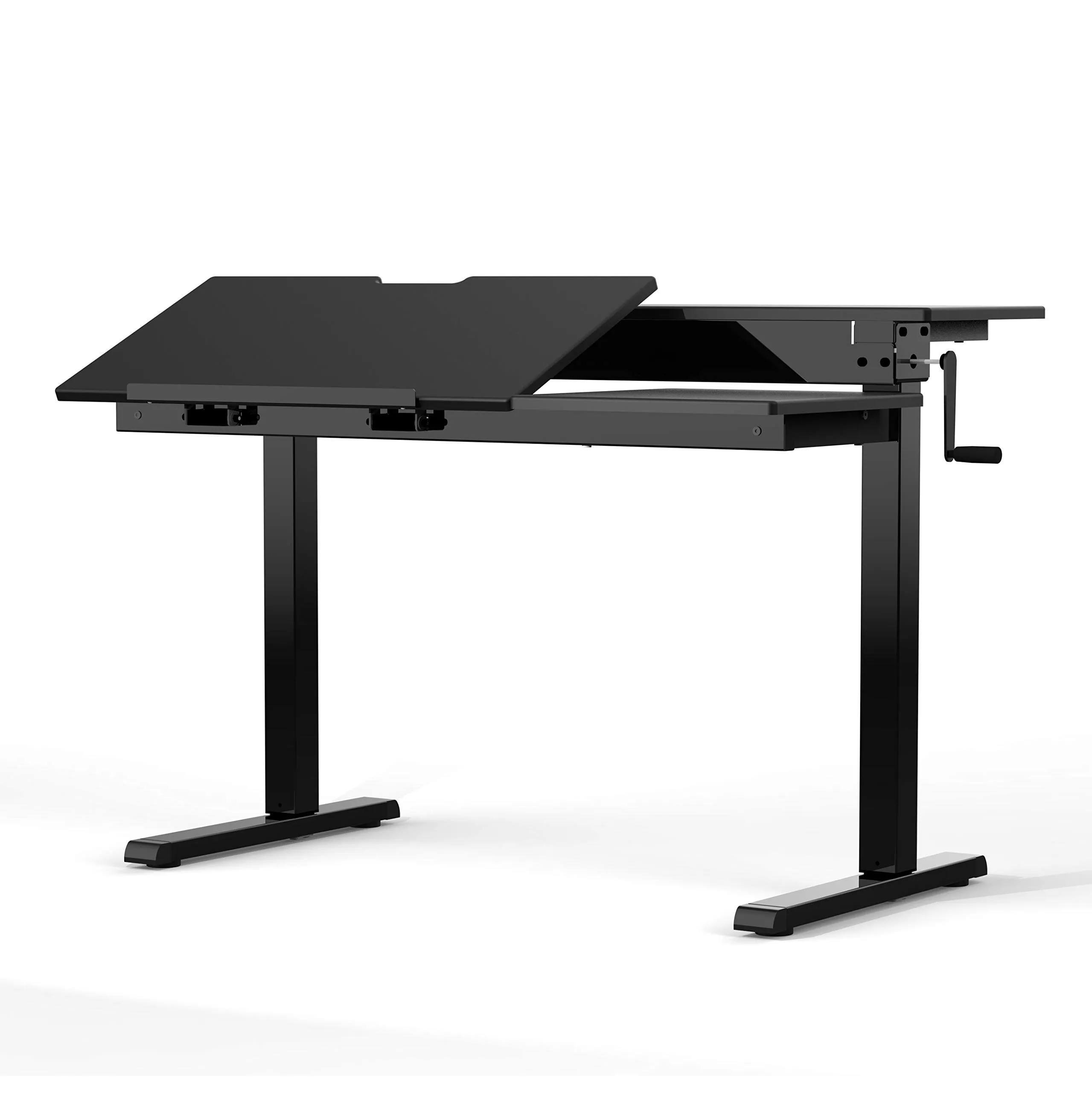 站立式办公桌,48 英寸曲柄可调高度,错层绘图桌人体工学办公桌,带显示器搁板